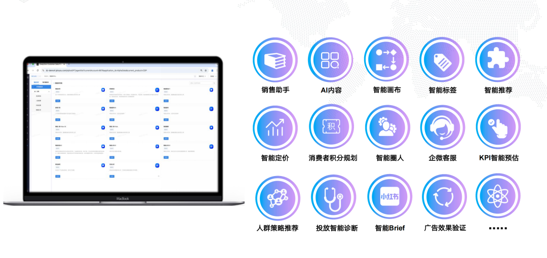 • 人生就是博智能全系列产品的无缝对接。全面整合人生就是博智能 CDP/MA 等全系列产品,打通所有产品模块,充分利用智能体技术,极大改善产品体验,扩展智能场景,深度挖掘数据价值,提高了产品使用率,让企业营销和决策变得更加智能。
